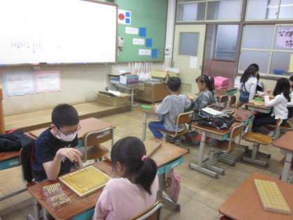 今日はみんなで,ハサミ将棋トーナメントをしました。静かな教室に熱い戦いが繰り広げられています。