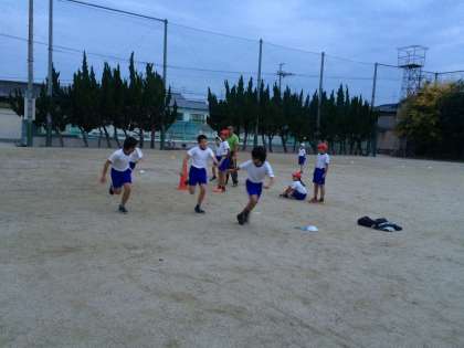 先週は雨だったので,久しぶりの部活動でした。しっぽとりで体を慣らし,5分間走,リレーといろいろな走り方をしました。5分間走は,同じペースで走り続けることを目標に走りました。リレーでは,バトンの渡し方が課題ということがわかり,グループごとにどうしたら速くなるかを考えながら練習していました。