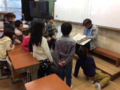 今週はクリスマス読書週間です。朝読書の時間,図書委員のお兄さん・お姉さんが教室へ来て,絵本の読み聞かせをしてくれています。木曜日は,担任以外の先生が担当です。1年1組には,5年生の先生が来てくださいました。特別に3冊も読んでもらい,とても嬉しそうでした。これからも,いろいろな本に出会って欲しいものです。