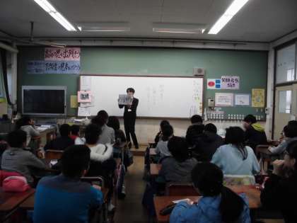 毎朝,図書委員会のお友達が各学年の教室で本の読み聞かせをしてくれています。今日は,それぞれの担任が,自分のクラスでない学年の教室で本の読み聞かせをしました。6年の担任は3年生でよみきかせをし,6年生には,2年の担任が読み聞かせをしました。『イチローの夢』と『よかったね ネッドくん』の本でした。みんなが掛け声を合わせて,随分盛り上がって聞いていました。