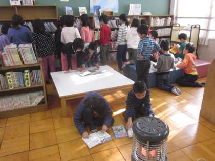 3時間目,読書を楽しんでいると4年生の子どもたちもやってきました。みんな一生懸命です!