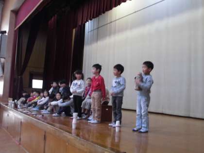 今日の朱六タイムは,1年生の学習発表でした。生活科で学んだ「秋みつけと秋あそび」について発表しました。緊張しながらも,大きな声でしっかりセリフを言うことができました。また,学芸会で歌った「はなまるロック」を「あきまるロック」に替え,楽しんですることができました。発表後の他学年のインタビューでは,興味を持ってくれた様子が伝わり,とても嬉しそうでした。引き続き,季節の移り変わりを感じ,楽しんで欲しいと思います。