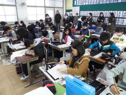 写真は,1・2時間目のケータイ教室(携帯電話市民インストラクターの先生に来ていただきスマートフォンとの付き合い方について考えました)と,3時間目の書写(毛筆で半紙に『考える子』を書きました)の様子です。お家の方に見ていただき,いつも以上に集中し頑張る姿がたくさん見られました。お忙しい中ご参観いただき,たいへんありがとうございました。