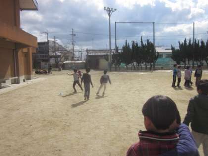 ドッジボールを楽しみました。以前に比べると子どもたちの投げるボールが強くなりました。