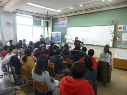 「綱を渡る男」「おふろじゃ おふろじゃ」「ともだち」の3つの作品を読んでくださいました。6年生のみんなは熱心に聞き入っていました。