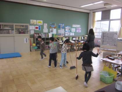 3月から育成3組との交流掃除が始まりました。日替わりで3.4人が3組教室に行き,一緒に掃除をしています。掃除の後は,3組でしているカードやブロックを使った学習を体験させてもらい,嬉しそうな子どもたちです。交流掃除をきっかけに,これまで以上に仲良くしていって欲しいと思います。