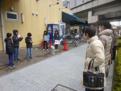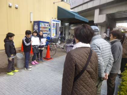 3月16日(木),4年生は総合的な学習の時間「やさしさいっぱい朱六の町」で学んだ事を生協とライフで発表しました。