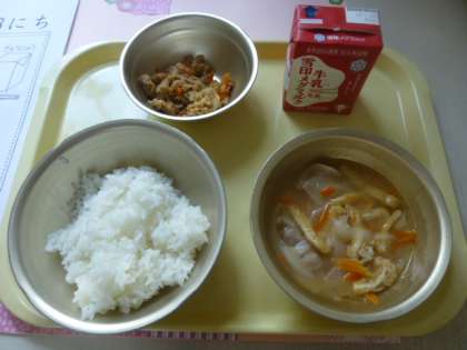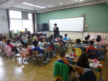 当番でない子ども達もきちんと待つ事ができました。みんなの「いただきます!」の元気な声が教室に響いていました。