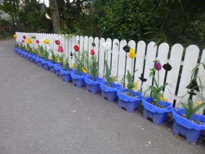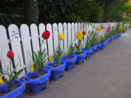 2年生が,1年生の時から一生懸命水やりをしてきたチューリップ。春の暖かな風に誘われて,今綺麗な花を咲かせています。