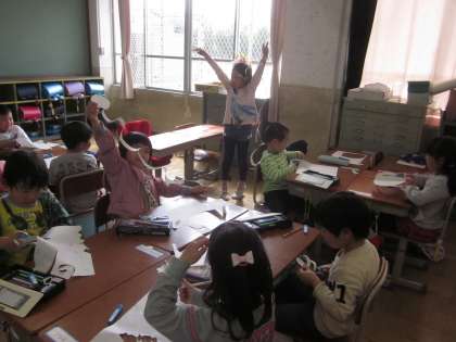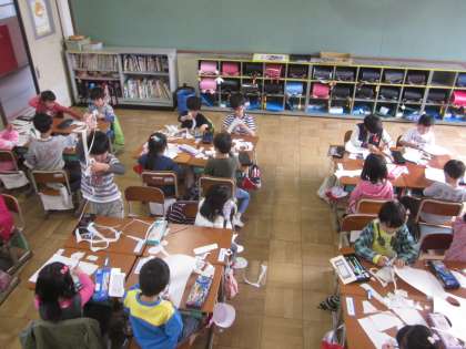 正しい使い方を覚え,いろんな形を切って楽しみました。机をグループにして,友達の作品を見ながら,友達と話しながら楽しみました。みんなとっても上手です!