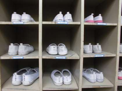 「かかとをそろえるべし!」を合言葉に,上靴の整頓をがんばっています。きれいに揃うととても気持ちがよいです。意識しなくてもできるようになると素敵ですね!