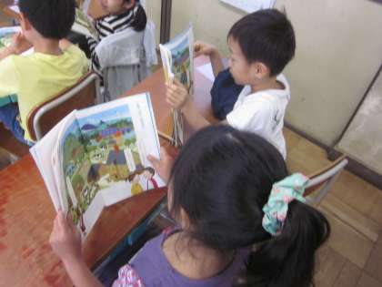 友だちとペアになって,「絵を見て話そう」を楽しみました。「どこにいるの?」の問いかけに,場所をより詳しく話そうと工夫をしていました。また,おうちでもやってみてください。