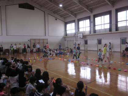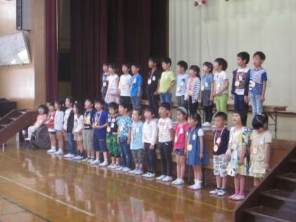 お兄さんやお姉さんにいっぱいお祝いをしてもらった迎える会,とっても嬉しそうにしていた1年生です。言葉や歌(校歌)もとってもじょようずにできました。また,様子をお聞きください。