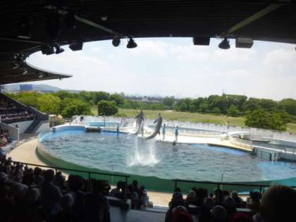広々とした芝生の公園で,学年やたてわりグループで思い切り体を動かして遊びました。水族館では,迫力のあるイルカショーも見ました。