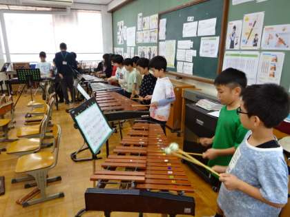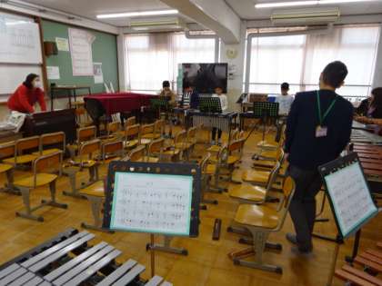 木琴と鉄琴を使って演奏です。リズムに合わせて演奏を楽しんでいました。