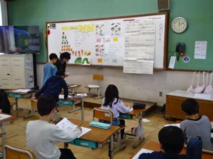 栄養教諭の先生と一緒に学習です。今日は、「はらぺこあおむし」のお話を読んで、しっかりといろいろなものを食べて、成長していくことを学習しました。季節の旬の食材のうま味もしっかりと味わいながら、これからもしっかりと食べていきたいですね。