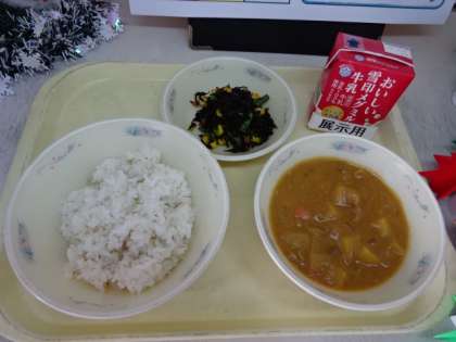 今日の献立は、「麦ごはん・牛乳・ポークカレー・ひじきのソテー」でした。大人気のカレーに子どもたちも大喜び。食もよくすすみます。今日も美味しい給食、ごちそうさまでした!