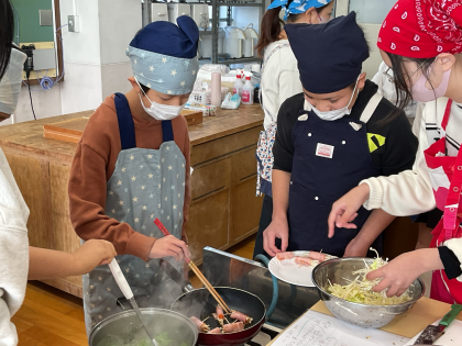 実際に調理をすると、他の具材でも調理してみたいという気持ちが大きくなったようです。おうちで「まかせてね、今日の食事」と言えるといいですね。