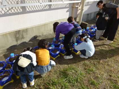 アサガオを育てていた植木鉢を整理し、チューリップの球根を植えるための準備をしました。春にきれいな花が咲くのを楽しみにしています。