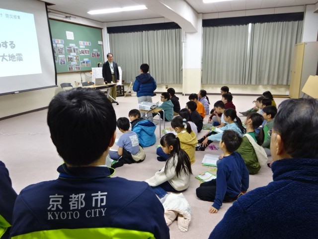 地域の自主防災の方々や中京区役所の方々と一緒に防災についての学習をしました。お話では地震の恐ろしさをあらためて感じさせられましたし、災害が起こった時には、自分たちに何ができるのかを考えるきっかけにもなりました。