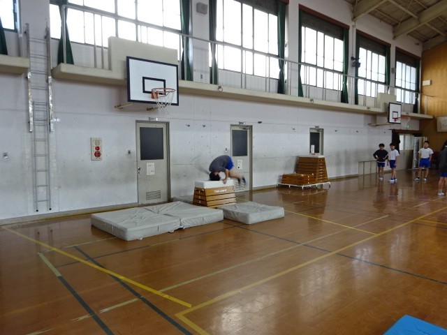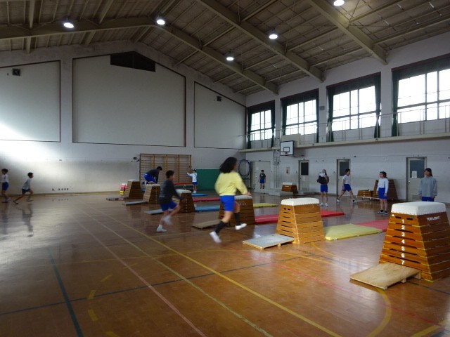 とび箱に挑戦しています。6年生になると力強く踏み切ってダイナミックに跳ぶ姿も見られます。みんな自分のめあてに向かって頑張って取り組んでいます。