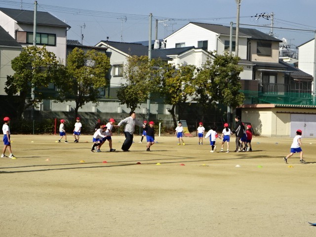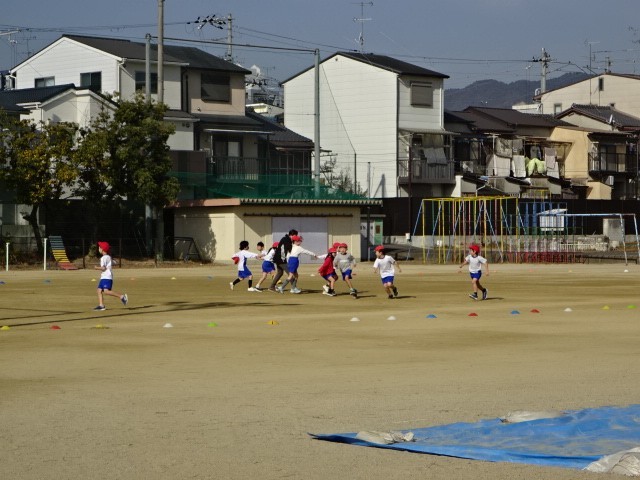 運動場で「おにあそび」をしました。先生も一緒になってみんなで元気に体を動かすことができました。