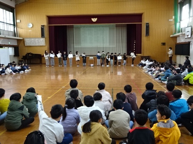 全行が集まってのスマイルタイム、3学期の目標を確認したり、新しく歌う全校合唱の曲の練習をしたりしました。朝のあいさつ運動も水曜日と金曜日に企画委員で進めてくれます。全校にあいさつの声が広がると嬉しいです。