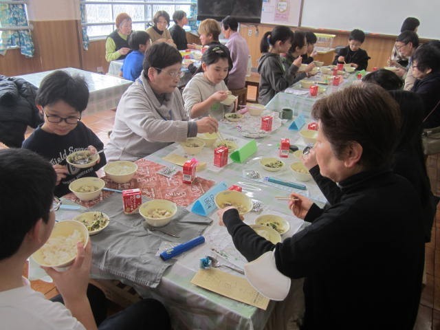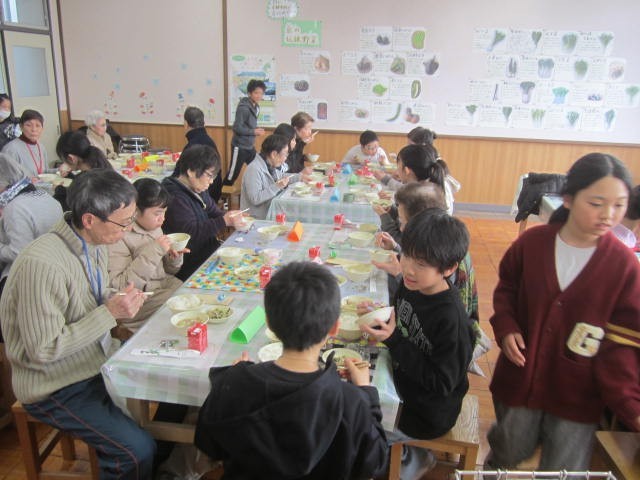 最後は給食を一緒にいただきました。昔の給食のお話も聞かせていただきながら、楽しく給食をいただくことができました。