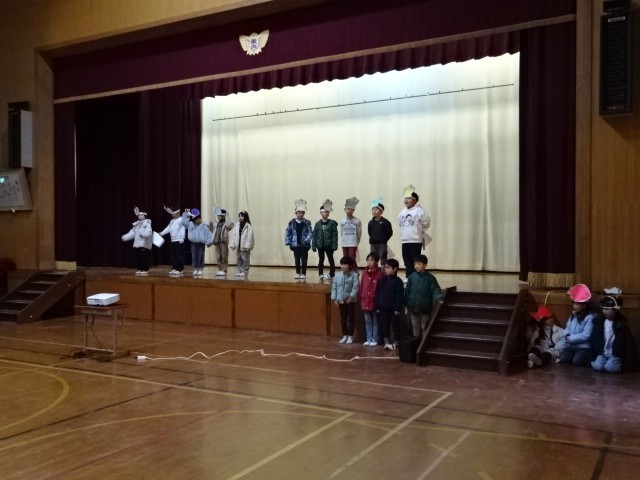 本番が近づいて、少し緊張した様子も見られる中での練習でしたが、みんなで頑張っています。お面もお気に入りのようで、本番も張り切ってくれることと思います。