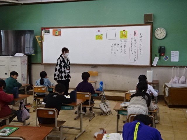 国語では、「お話の作しゃになろう」を学習しています。挿絵を見ながら、登場人物の性格やお話の構成をなどを自分で考えていきます。どんなお話が生まれていくのか楽しみです。