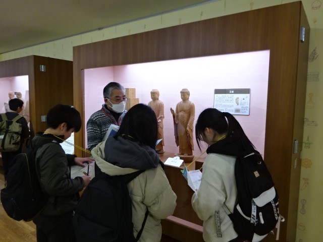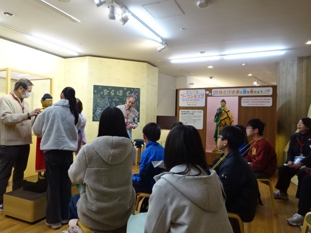 午後からは、奈良国立博物館の館内を見学です。ワークショップを体験したり、クイズに挑戦したりしました。ボランティアさんの説明もわかりやすく、普段は見ることができない像を間近で見ることもできました。奈良への社会見学、卒業を前にまた一つの思い出になりました。
