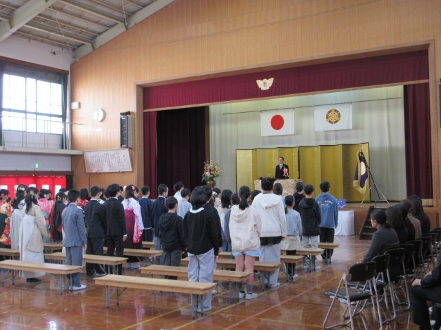 本日、29名の児童が本校を巣立っていきました。厳粛に、そして温かな雰囲気で卒業式を挙行することができました。在校生代表として参加した5年生の姿も素敵でした。地域の皆様、保護者の皆様、本当にお世話になりました。ありがとうございました。
