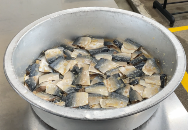 さばのたつたあげは、さばをみじん切りにしたしょうが・料理酒・薄口しょうゆに浸けた後、米粉と片栗粉をまぶして揚げました。