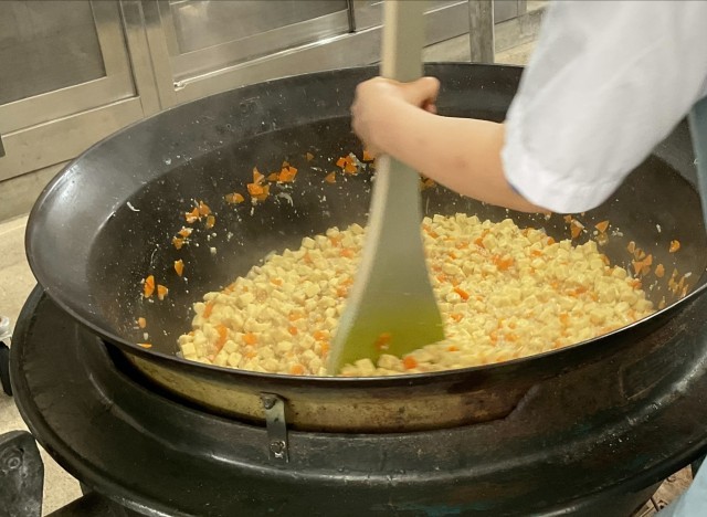 高野どうふのそぼろ煮は、高野どうふがふわふわと柔らかい食感になるよう、火加減や加熱時間を調整しながら野菜と別に炊きました。また、高野豆腐に味をしみこませることで、野菜は少量の味付けで仕上げることができました。