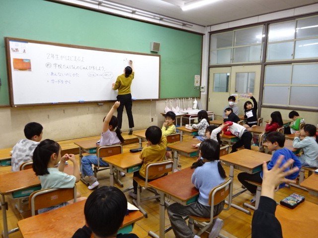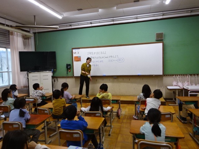 1年生を学校たんけんに連れていくための準備を進めています。去年、自分たちがしてもらったことを思い出しながら、1年生のために頑張っています。案内する教室の先生にも、個々にインタビューし、準備を進めています。
