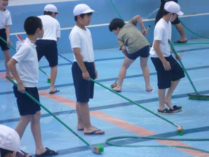 5年生と6年生が,よごれたプールをそうじしてくれました。