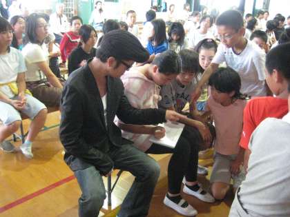 たけさんを講師に迎え,『ありがとうのお話』と題して,「ありがとう」という言葉がもつパワーについてお話を聞きました。