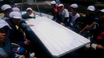 はじめて船に乗った子もいて,みんなうれしそうです。