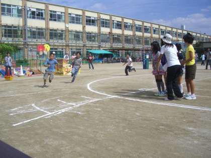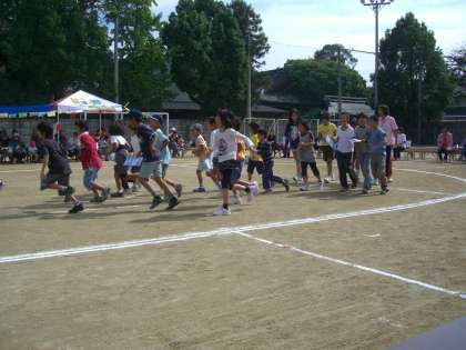 西院幼稚園でも運動会が開かれ,プログラムの終わりの方で,卒園児の小学生が「はしり」の競技に参加していました。