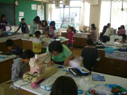 ミシンで雑巾を縫うことを通して,子どもたちは大切なことをいろいろ学んでいます。