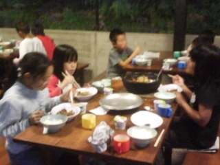 第1日目のメインの活動は野外炊事です。材料を切ったり火をおこしたり,みんなでするのは初めての経験です。