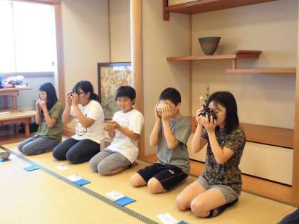 地域の女性会の方に,お茶会を開いていただきました。お茶をたてるグループ,お茶を運ぶグループ,お茶をいただくグループに分かれて,お茶の作法を教えていただきました。児童からは,「初めて飲んだけどおいしい!」「昔からの文化にふれることができてよかった。」といった感想が聞かれました。