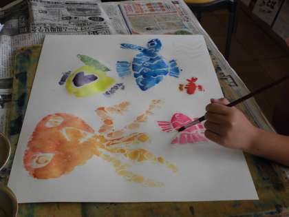 使った絵の具は「赤」「青」「黄」だけなのに,混色して,たくさんの素敵な色が生まれました。