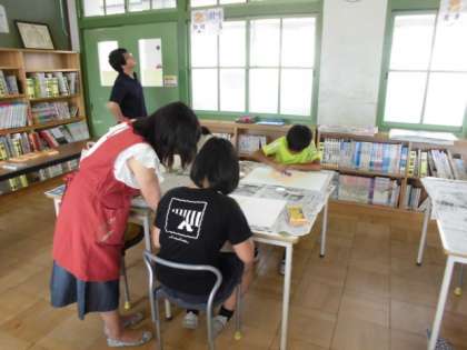 前日の低学年 絵画教室に引き続き,以前に本校に勤務されていた古塚先生を講師にお迎えして,高学年 絵画教室を行いました。