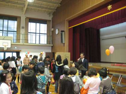 朝早くから運動場で準備していただいていたのに,始まる少し前から雨が降り出し,急遽体育館で行われることになりました。魚釣り,ビン立て,缶つみ,パターゴルフ,丸太切り等々・・・どのコーナーも大盛況,子どもたちは楽しく体を使っていました。また,地域の方とかかわる姿もあちこちで見られ,温かいふれあいの場ともなっていました。2時間があっという間に過ぎた感じがしました。
