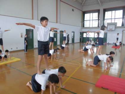 組体操の3人技も完成に近づいてきました。技を練習する時だけでなく,普段の生活も見直し,高学年らしい姿を見せてくれそうな5・6年生。また明日からの練習での成長も楽しみです。