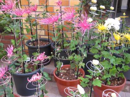 春から教職員が一人一鉢育ててきた菊の花が開き始めました。蕾が膨らんできたものから順次玄関に並べています。前を通る子どもたちも気になる様子。