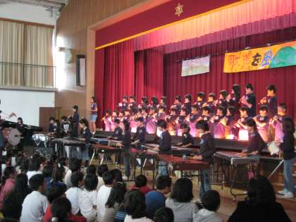 5年生の『歌声を風にのせて』は,体を動かしながらの合奏に,観ている方から自然と手拍子が起こりました。