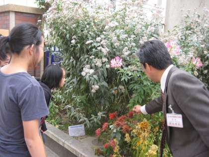 という校長先生の言葉に,みんなが見守る中,フジバカマの花の上に,女の子はそっとチョウをのせました。