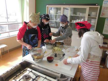 16日(金)1・2時間目に1組,3・4時間目に2組で調理実習をしました。それぞれのグループで考えたおかずを協力して作ることができました。「味付けが難しいな。」という声がたくさんあり,普段食事を作ってくれるみなさんに,改めて感謝の気持ちを感じていました。今日の学びを,ぜひ,家庭で実践してほしいと思います。